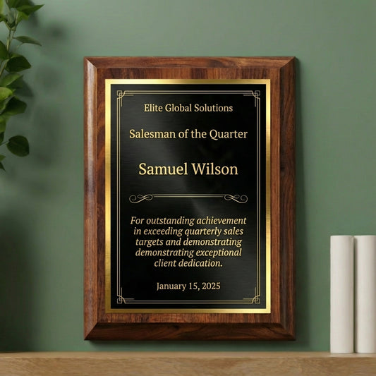 Personalized Salesman Gift Award Plaque - Employee Recognition - Quarter Award - Laser Engraved - Custom Name