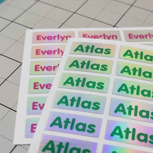 SMALL NAME LABELS, Holographic Name Stickers Daycare Labels, School stickers, Full Color Labels, Waterproof Name Labels, Personalized Labels