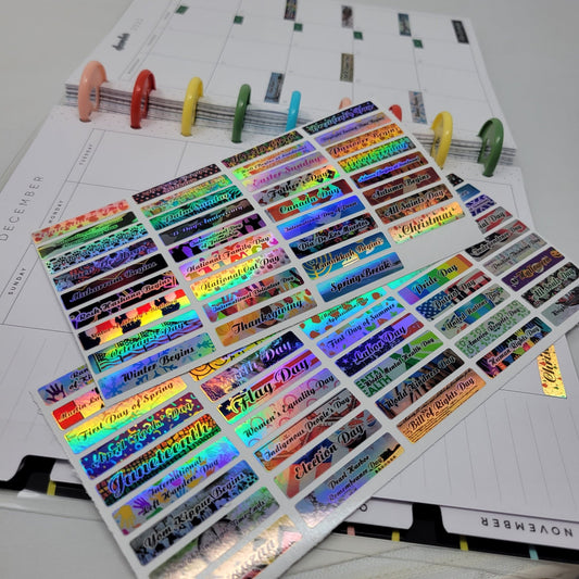 Holographic, Full Color, Planner Stickers, Holographic Sheet Stickers For Planners, Full Color, Waterproof, 80 Major Holidays!
