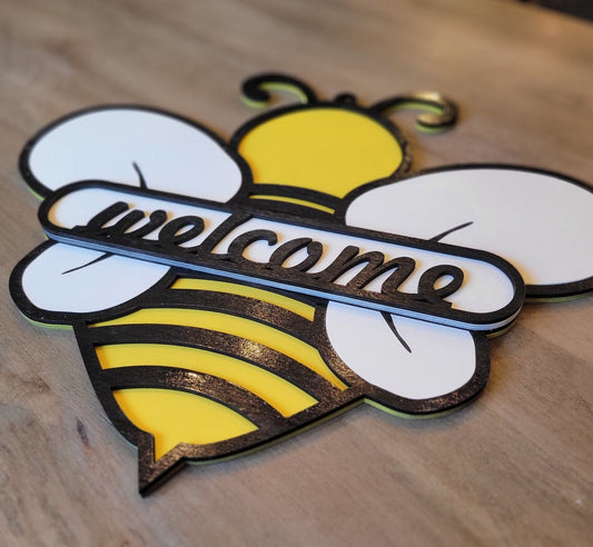 Laser Ready Bee Welcome Sign - CO2 Laser File Bundle - Glowforge Files - Lightburn Files- Omtech, SVG Files, Includes Split Design