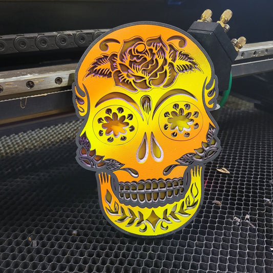 Laser Cut Sugar Skull, Multi-Layer Digital File Bundle for Laser Cutters, Glowforge Ready, Lightburn File, SVG, AI, Laser Cut Halloween