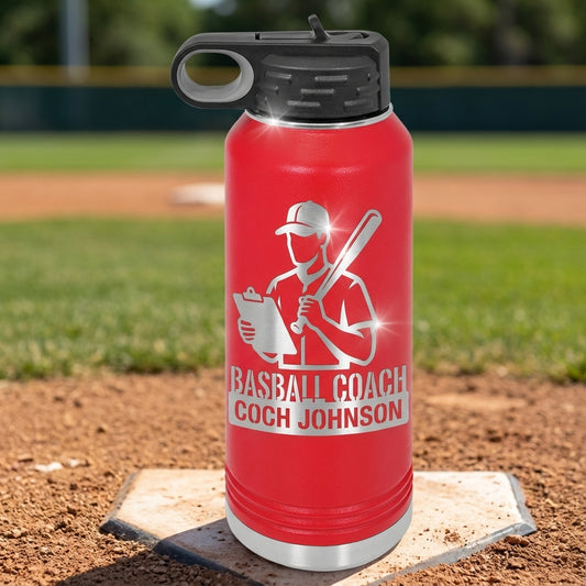 Personalized Baseball Coach Water Bottle Gift - Laser Engraved Hydration for Coaches - Custom Name Team Thank You Present