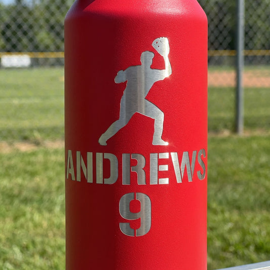Personalized Baseball Pitcher Water Bottle - Custom Player Gift - Laser Engraved Hydration Bottle - Durable Sports Drinkware