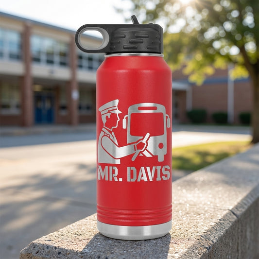Personalized Bus Driver Gift Water Bottle, Thank You Gift, Appreciation Present, Custom Name Engraved 32oz Bottle, Durable Hydration