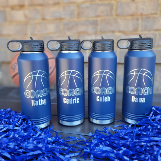 Personalized Basketball Water Bottles - Custom Engraved 32oz Stainless Steel Bottle for Basketball Players and Basketball Coaches