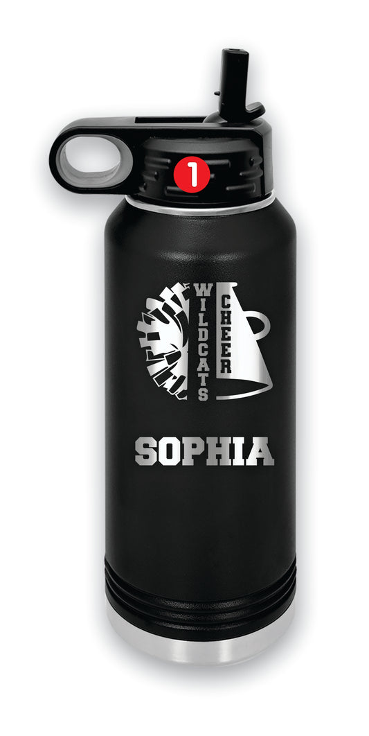 Personalized Cheerleading Water Bottles - Custom Engraved 32oz Stainless Steel Bottle for Cheer Teams, Cheerleaders and Cheer Coaches