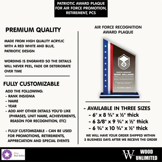 Air Force Promotion Gift Plaque, Military Promotion Gift for Officer or Enlisted USAF, Perfect for Promotion, Retirement, Recognition or PCS