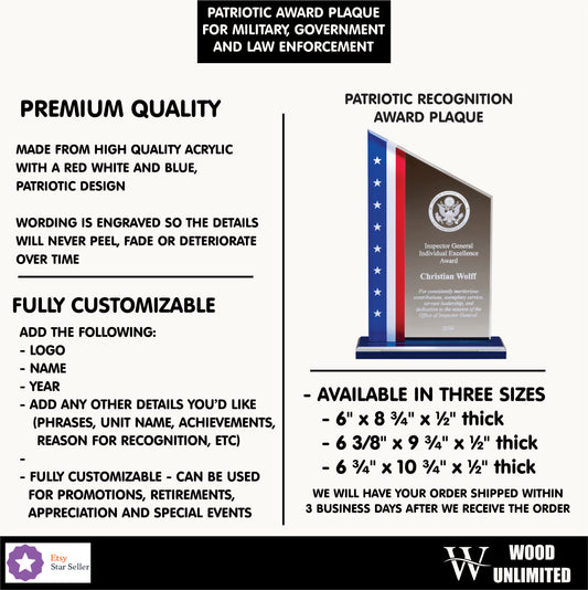 Personalized Award Plaque for Military, Law Enforcement and Government – American Flag Design – Custom Engraved Military Recognition Plaque