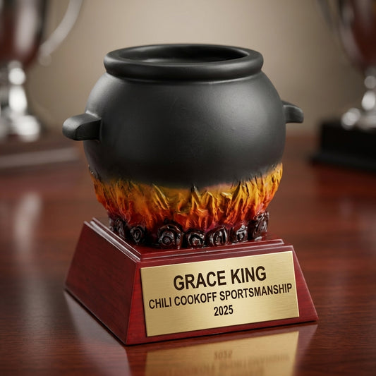 Chili Cookoff Trophy Award | Personalized | Custom Engraved | Chili Cookoff MVP | Gold Name Plate | Wood Unlimited