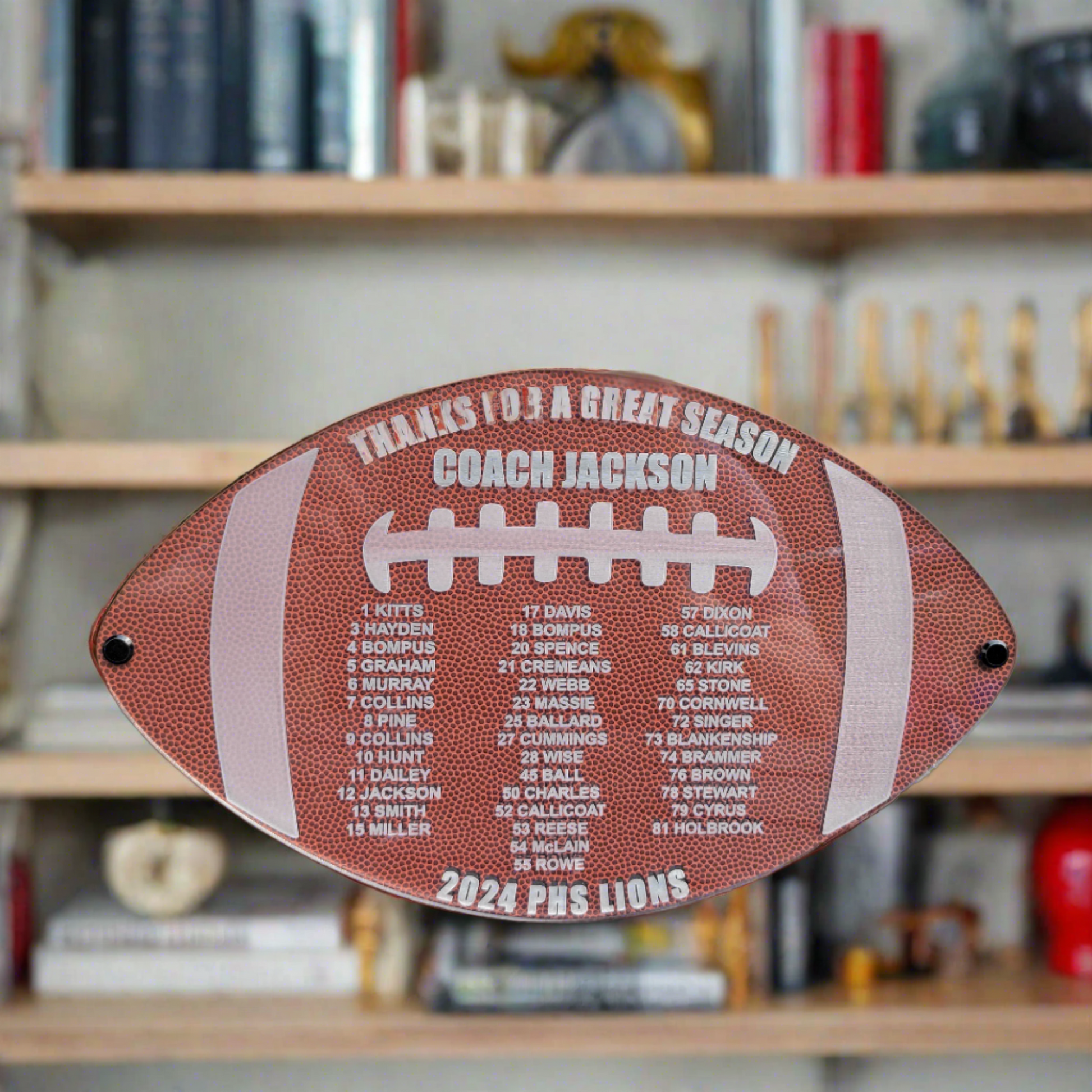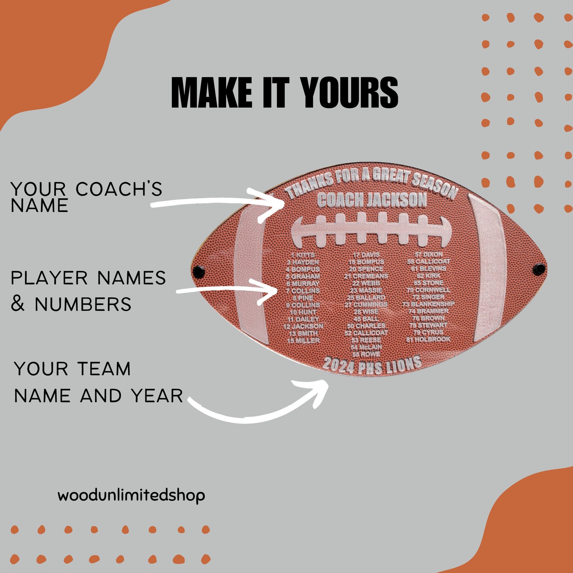 Show your appreciation for your football coach's dedication and hard work with this beautifully crafted and customizable plaque. Order yours today!