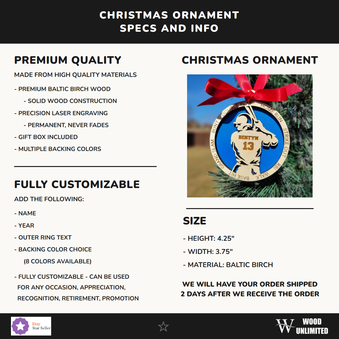Personalized Baseball Christmas Ornament Gift for Baseball Player, Baseball Player Gift, Christmas Gift for Baseball Player