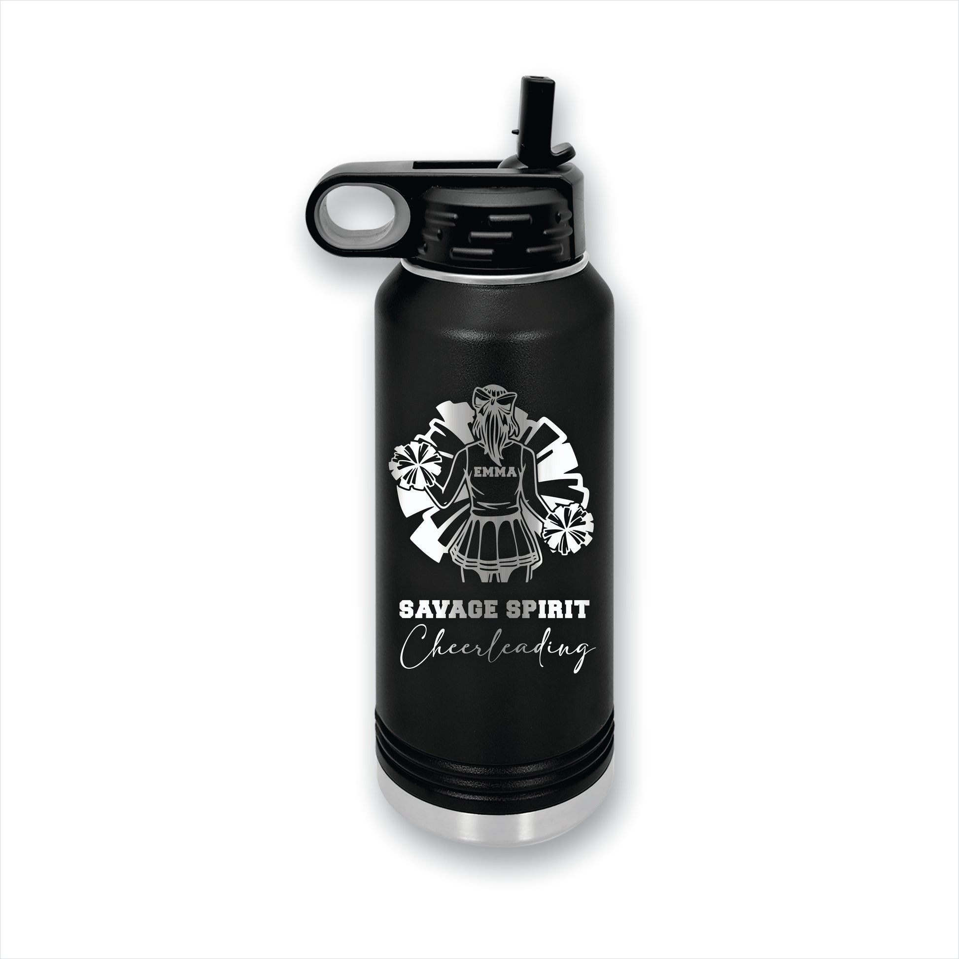 Personalized Cheerleading Water Bottles - Custom Engraved 32oz Stainless Steel Bottle for Cheer Teams, Cheerleaders and Cheer Coaches