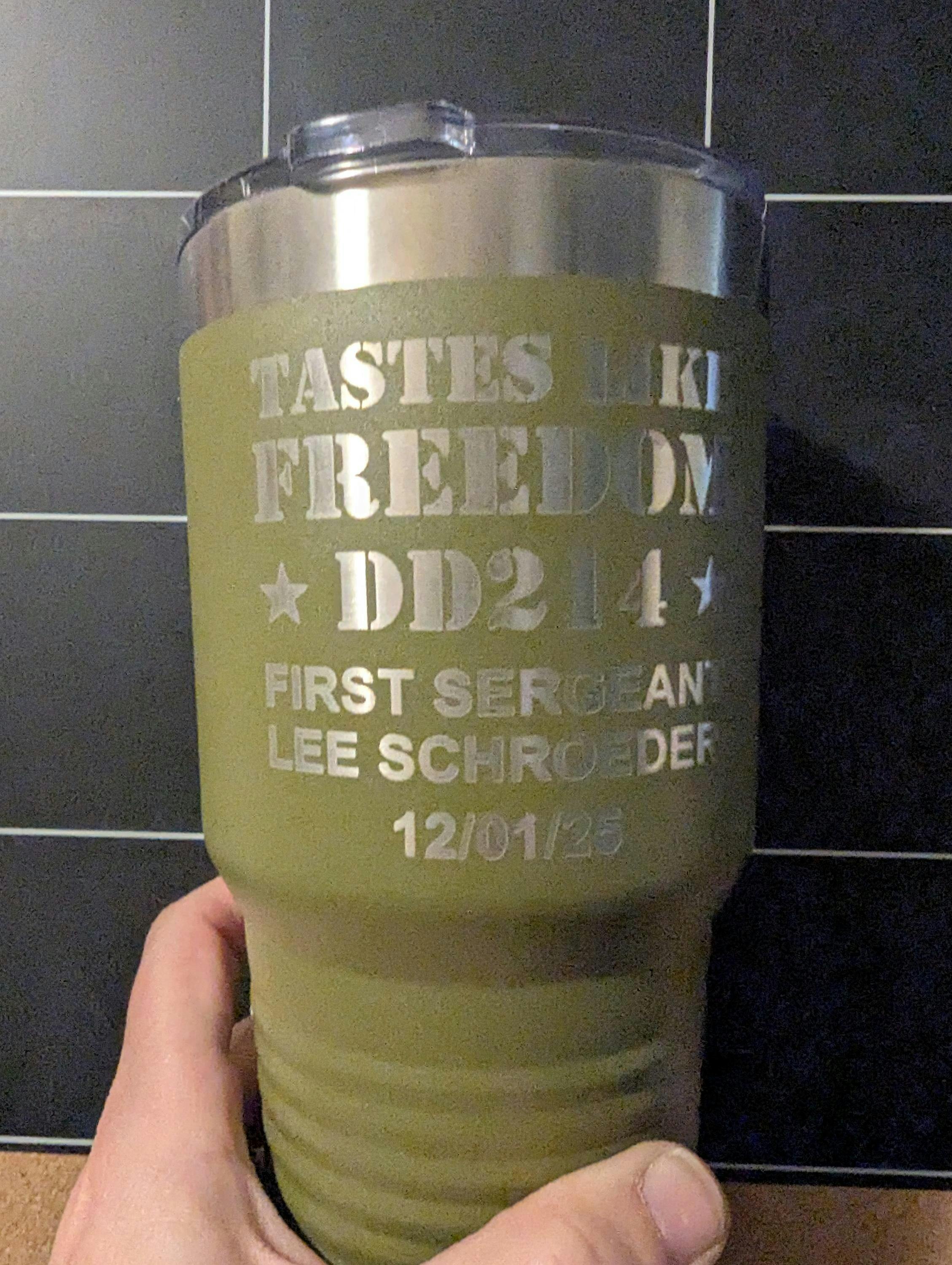 Our customizable tumblers are the perfect choice for personalized retirement gifts for Army, Air Force, Navy, or Marines. Ideal for celebrating a military career. Elevate your gift-giving game with our high-quality, personalized DD214 Retirement Drink Tumblers.