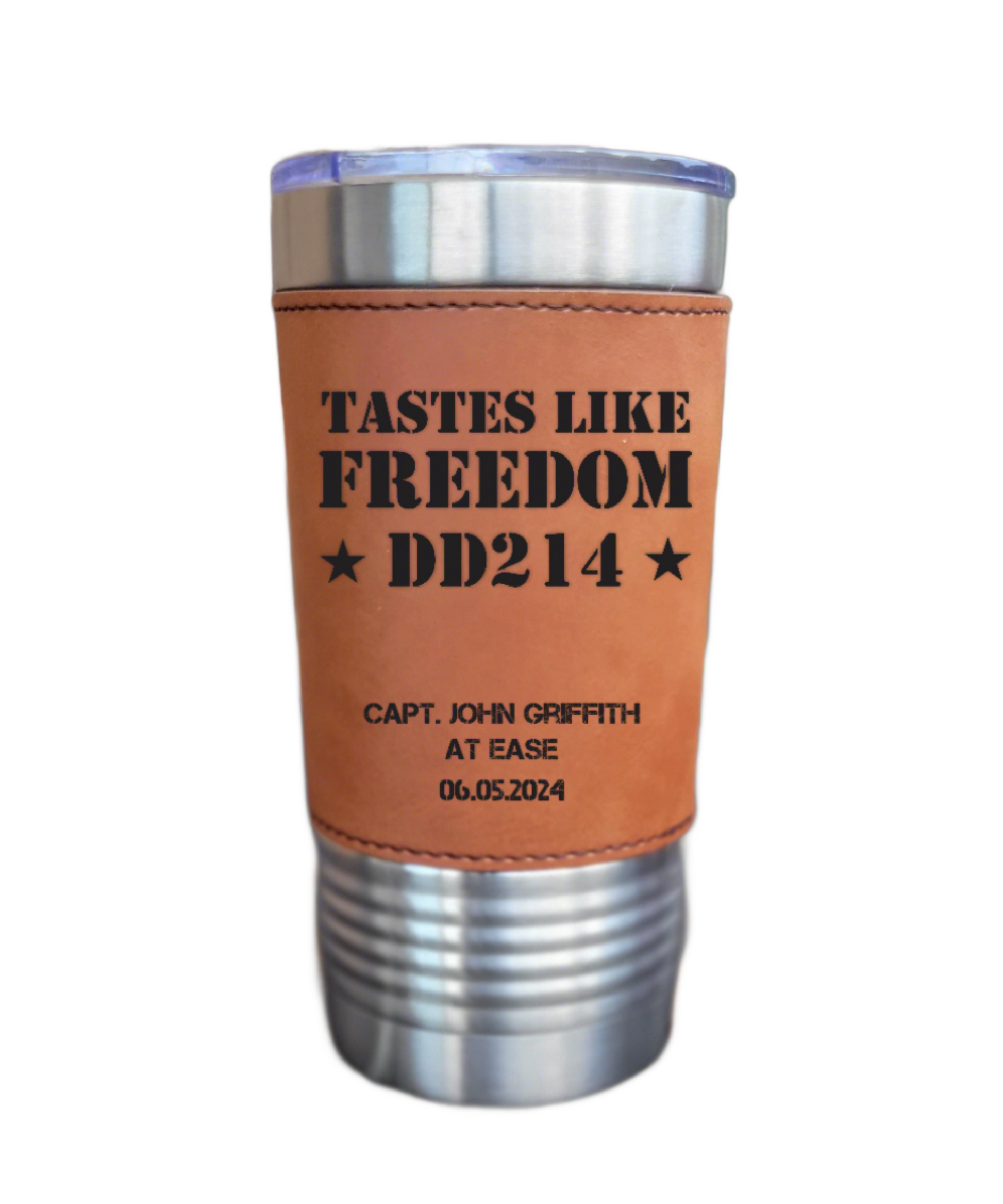 Personalized DD214 Military Retirement Gift - Personalized 20oz Insulated Leatherette Drink Tumblers
