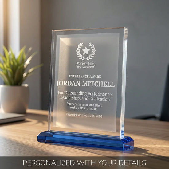 Give the gift of lasting recognition with this stunning personalized award. Create a truly unique and meaningful present that celebrates their accomplishments and demonstrates your sincere gratitude.
