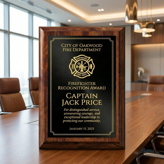 Personalized Firefighter Captain Award Plaque - Fire Department Recognition Gift - Custom Laser Engraved Wood - Hero Tribute